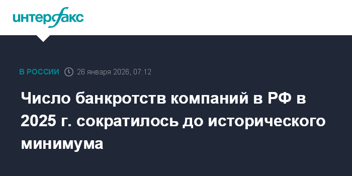 Число банкротств компаний в РФ в 2025 г. сократилось до исторического минимума