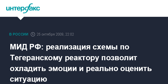 МИД РФ: реализация схемы по Тегеранскому реактору позволит охладить эмоции и реально оценить ситуацию