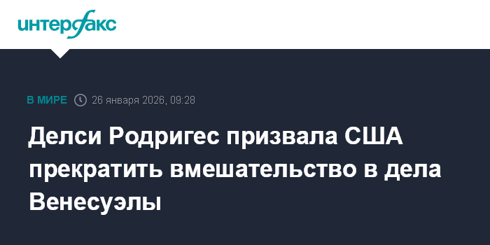 Москва. 26 января. INTERFAX.RU - Временный президент Венесуэлы Делси Родригес предостерегла США от вмешательства во внутренние дела ее страны, сообщают испаноязычные СМИ.
