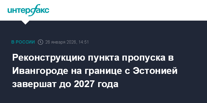 Москва. 26 января. INTERFAX.RU - В Ленинградской области реконструкцию автомобильного пункта пропуска "Ивангород" на границе с Эстонией должны завершить в конце 2026 года, сообщил журналистам первый замначальника Северо-Западного таможенного управления (СЗТУ) Сергей Сенько.