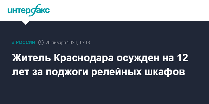 Житель Краснодара осужден на 12 лет за поджоги релейных шкафов