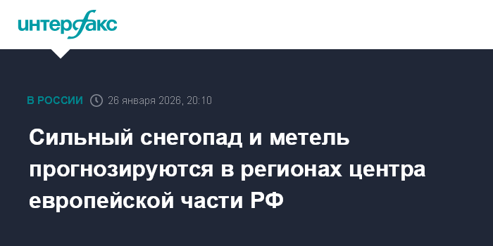 Согласно данным Гидрометцентра России, 27 января в Смоленской области ожидается сильный снег, мокрый снег, гололед, во Владимирской области - сильный снег. В Тверской и в Калужской областях сильный снег прогнозируется 27 и 28 января. В период с 27 по 29 января сильный снег прогнозируется в Ярославской и Ивановской областях, а также в Московской области, однако в московском регионе снегопад начнет ослабевать к утру. 28 января в Орловской области ожидаются осадки в виде мокрого снега и дождя, гололед. 28-29 января снег и мокрый снег прогнозируются в Тульской области.