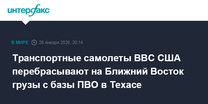 Транспортные самолеты ВВС США перебрасывают на Ближний Восток грузы с базы ПВО в Техасе