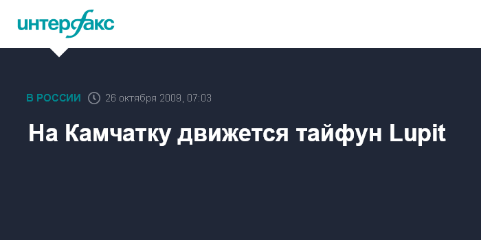 Петропавловск-Камчатский. 26 октября. ИНТЕРФАКС-ДАЛЬНИЙ ВОСТОК - Юго-восточные районы Камчатского края окажутся в среду в зоне влияния тайфуна Lupit, развивающегося южнее Японских островов, сообщили агентству "Интерфакс-Дальний Восток" в Камчатского гидрометеоцентре в понедельник.