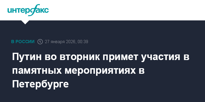 Путин во вторник примет участия в памятных мероприятиях в Петербурге