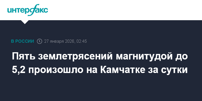 Пять землетрясений магнитудой до 5,2 произошло на Камчатке за сутки