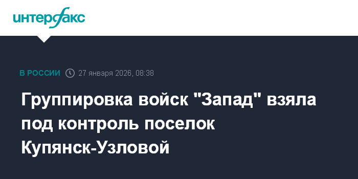 Москва. 27 января. INTERFAX.RU - Подразделения группировки войск "Запад" взяли под контроль населенный пункт Купянск-Узловой, ведут зачистку кварталов, заявил начальник Генштаба ВС РФ Валерий Герасимов.