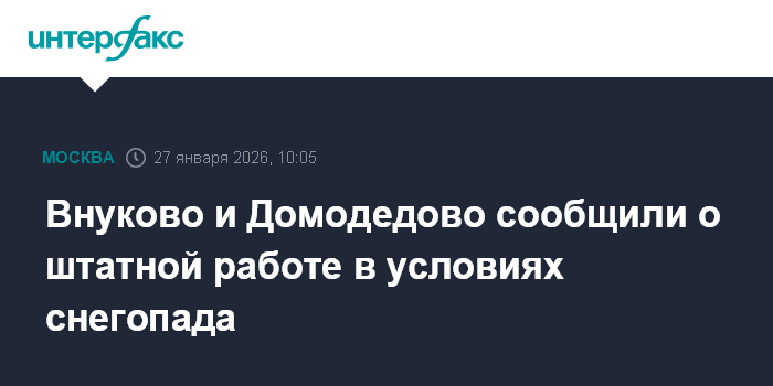 Внуково и Домодедово сообщили о штатной работе в условиях снегопада