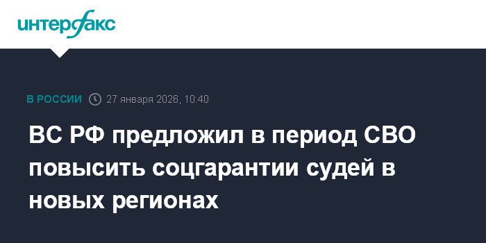 ВС РФ предложил в период СВО повысить соцгарантии судей в новых регионах