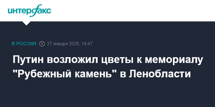 Москва. 27 января. INTERFAX.RU - Президент РФ Владимир Путин в Санкт-Петербурге во вторник возложил цветы к мемориалу "Рубежный камень" на Невском Пятачке.