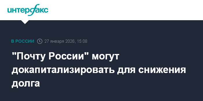 Москва. 27 января. INTERFAX.RU - Правительство рассматривает варианты докапитализации АО "Почта России" для снижения его долга, сообщил в комитете Совета Федерации по экономической политике гендиректор компании Михаил Волков.
