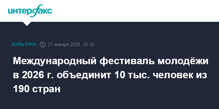 Международный фестиваль молодёжи в 2026 г. объединит 10 тыс. человек из 190 стран