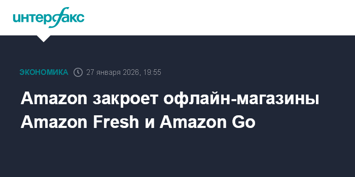 Москва. 27 января. INTERFAX.RU - Американская Amazon.com Inc. закроет продовольственные магазины Amazon Fresh и автоматизированные магазины шаговой доступности Amazon Go, говорится в ее блоге.