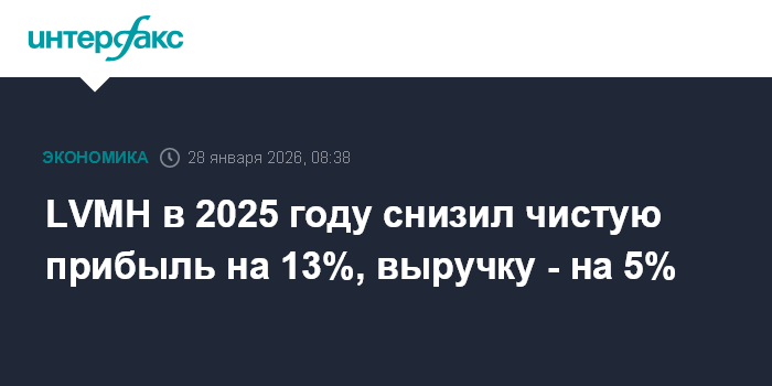 Москва. 28 января. INTERFAX.RU - Крупнейший мировой производитель товаров класса люкс LVMH Moet Hennessy Louis Vuitton SA по итогам 2025 года сократил чистую прибыль на 13%, выручку - на 5%.