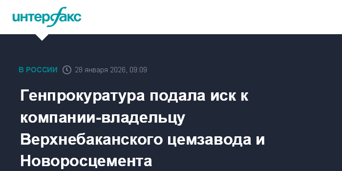 Генпрокуратура подала иск к компании-владельцу Верхнебаканского цемзавода и Новоросцемента