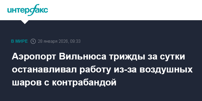 Москва. 28 января. INTERFAX.RU - Вильнюсский аэропорт с вечера вторника трижды приостанавливал работу из-за воздушных шаров с контрабандой, сообщил руководитель литовского Национального центра по управлению кризисами (NKVC) Вилмантас Виткаускас.