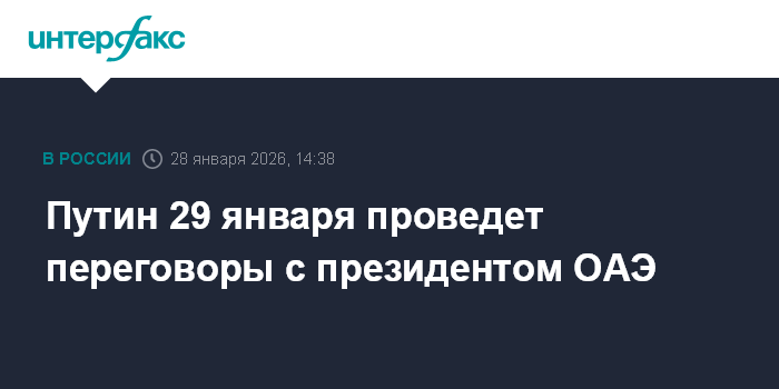 Путин 29 января проведет переговоры с президентом ОАЭ