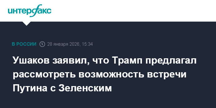 Ушаков заявил, что Трамп предлагал рассмотреть возможность встречи Путина с Зеленским