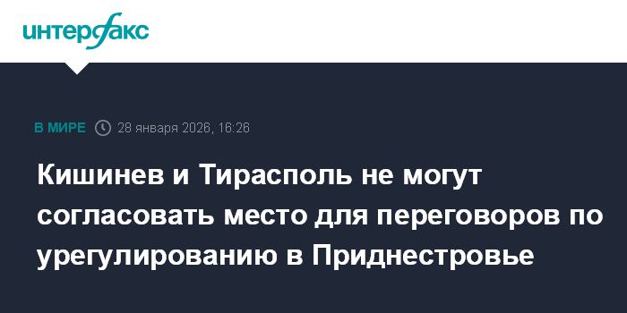 Москва. 28 января. INTERFAX.RU - Кишинев и Тирасполь обменялись обвинениями в блокировании переговоров по приднестровскому урегулированию из-за разногласий по месту их проведения.