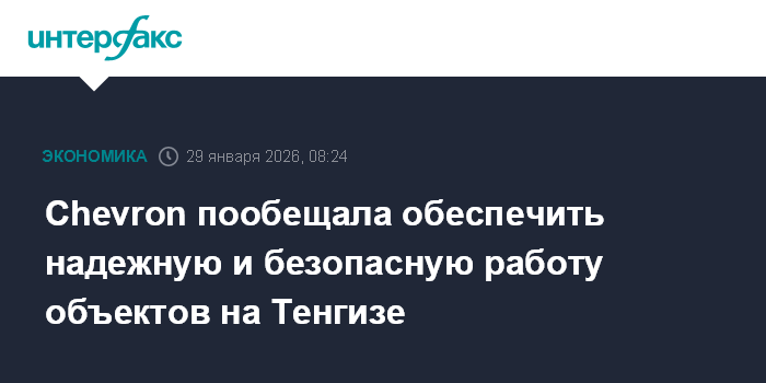 Москва. 29 января. INTERFAX.RU - Руководство Chevron ("Шеврон") заверило правительство Казахстана, что примет меры по обеспечению надежной и безопасной работы объектов на Тенгизе, сообщила пресс-служба правительства страны.