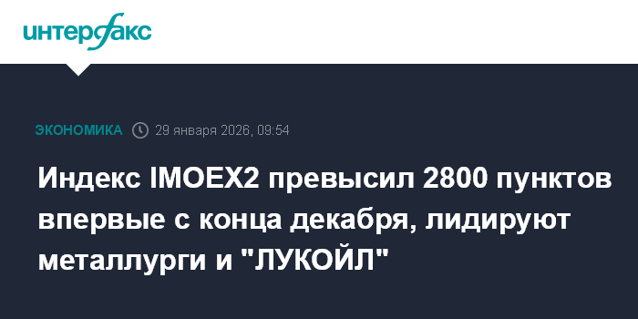 Индекс IMOEX2 превысил 2800 пунктов впервые с конца декабря, лидируют металлурги и "ЛУКОЙЛ"