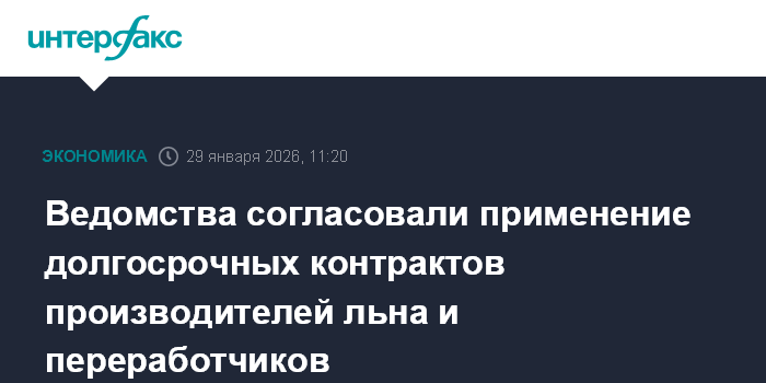Москва. 29 января. INTERFAX.RU - Минпромторг и Минсельхоз РФ договорились распространить на льняную отрасль практику заключения долгосрочных контрактов, сообщил министр промышленности и торговли РФ Антон Алиханов.