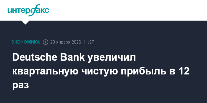 Москва. 29 января. INTERFAX.RU - Deutsche Bank AG, крупнейший банк Германии, в четвертом квартале 2025 года повысил чистую прибыль в 12 раз и получил максимальную для периода доналоговую прибыль.