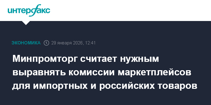 Москва. 29 января. INTERFAX.RU - Минпромторг РФ считает недопустимой практику, когда маркетплейсы устанавливают комиссии в отношении поставщиков импортной продукции ниже, чем для отечественных товаров, и выступает за изменение регулирования в этой сфере.