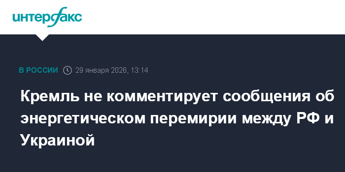 Москва. 29 января. INTERFAX.RU - Пресс-секретарь президента РФ Дмитрий Песков заявил, что пока не может комментировать информацию о переговорах по энергетическому перемирию между Москвой и Киевом.