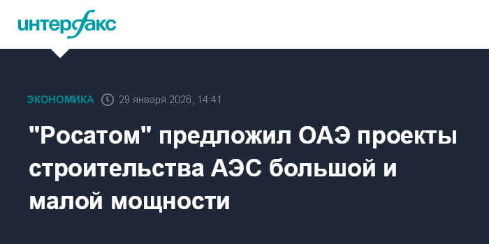 Москва. 29 января. INTERFAX.RU - Госкорпорация "Росатом" предложила ОАЭ свои проекты строительства АЭС большой и малой мощности, сообщил журналистам глава компании Алексей Лихачев.
