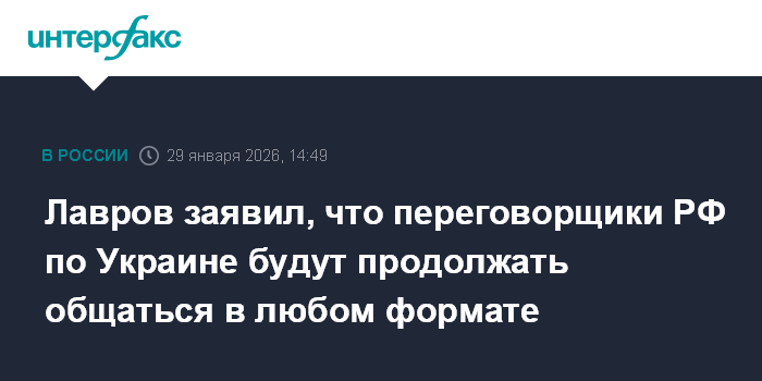 Москва. 29 января. INTERFAX.RU - Российская делегация на переговорах по украинскому урегулированию в Абу-Даби будет продолжать общаться в любом формате, заявил глава МИД РФ Сергей Лавров в четверг.