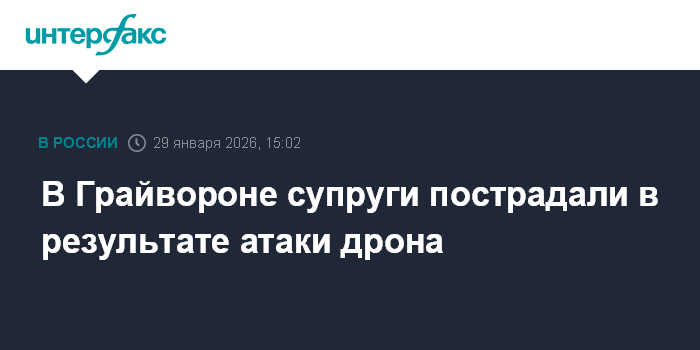 Москва. 29 января. INTERFAX.RU - В Грайвороне дрон атаковал автомобиль, пострадала супружеская пара, сообщил губернатор Белгородской области Вячеслав Гладков.