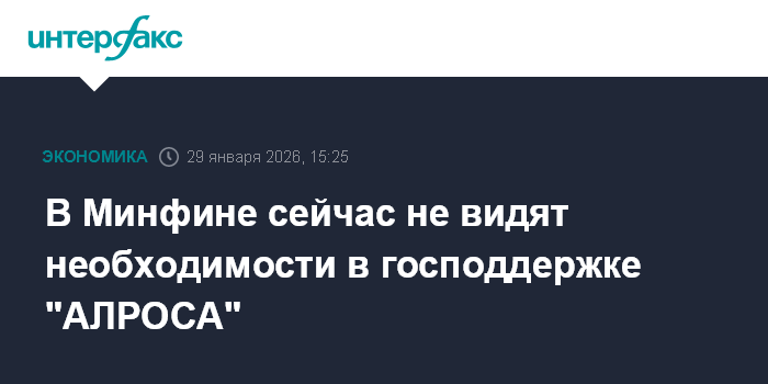 В Минфине сейчас не видят необходимости в господдержке "АЛРОСА"