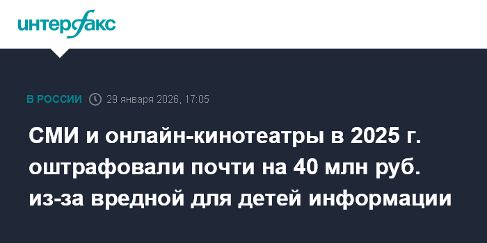 СМИ и онлайн-кинотеатры в 2025 г. оштрафовали почти на 40 млн руб. из-за вредной для детей информации