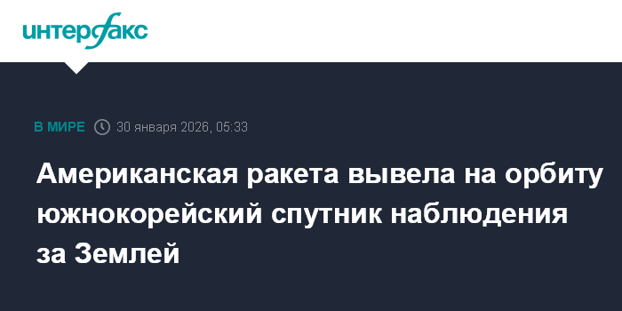 Американская ракета вывела на орбиту южнокорейский спутник наблюдения за Землей