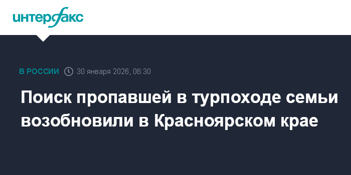 Москва. 30 января. INTERFAX.RU - Спасатели возобновили поиски семьи Усольцевых, пропавшей в Партизанском районе Красноярского края осенью 2025 года, сообщает пресс-служба краевого учреждения "Спасатель".