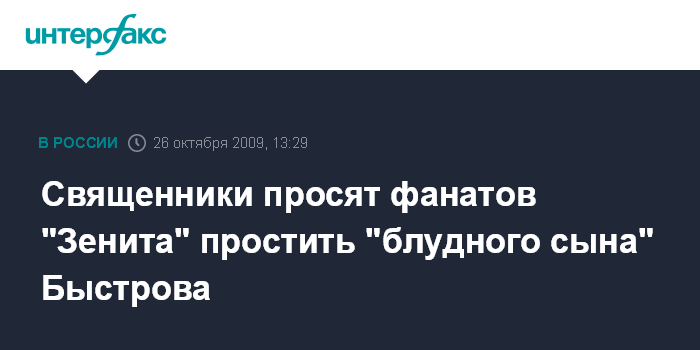 Священники просят фанатов "Зенита" простить "блудного сына" Быстрова