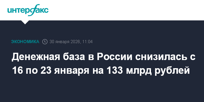Денежная база в России снизилась с 16 по 23 января на 133 млрд рублей