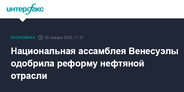 Москва. 30 января. INTERFAX.RU - Национальная ассамблея Венесуэлы единогласно одобрила во втором чтении частичную реформу закона об углеводородах, инициированную в середине января исполняющей обязанности президента Делси Родригес, сообщает пресс-служба парламента.