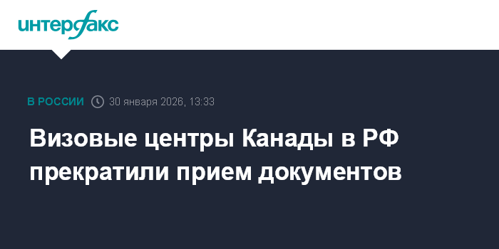 Москва. 30 января. INTERFAX.RU - Визовые центры Канады в России остановили прием паспортов от заявителей, сообщает сайт правительства этой страны.