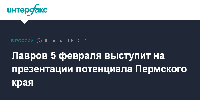 Лавров 5 февраля выступит на презентации потенциала Пермского края
