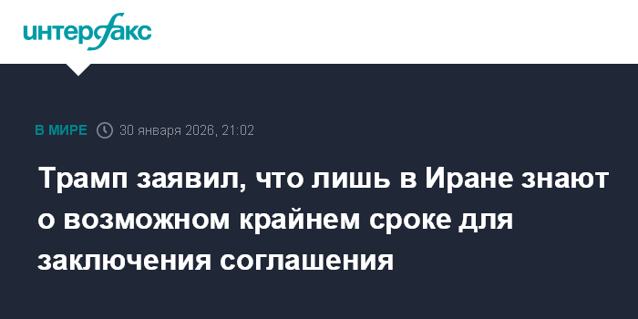 Москва. 30 января. INTERFAX.RU - Президент США Дональд Трамп в пятницу заявил, что только иранские власти представляют, есть ли крайний срок для договоренностей с Вашингтоном.