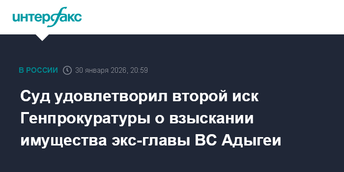 Суд удовлетворил второй иск Генпрокуратуры о взыскании имущества экс-главы ВС Адыгеи