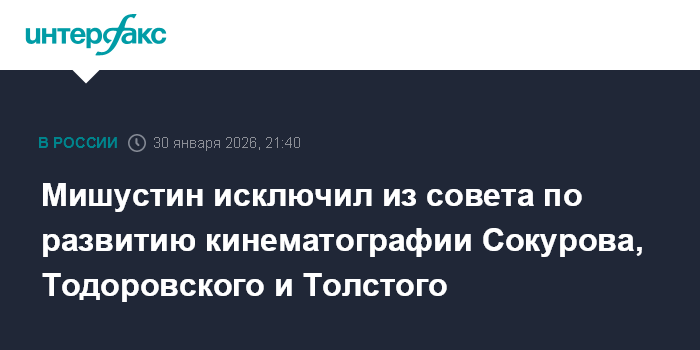 Мишустин исключил из совета по развитию кинематографии Сокурова, Тодоровского и Толстого