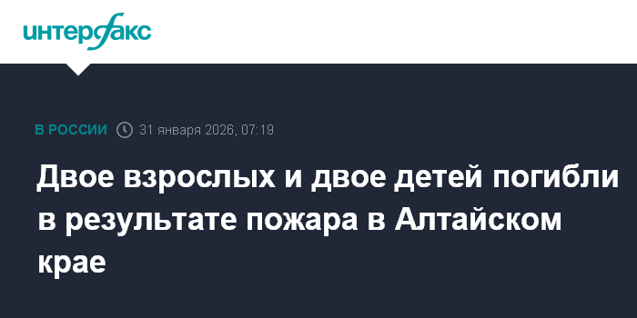 Двое взрослых и двое детей погибли в результате пожара в Алтайском крае