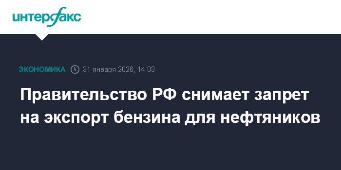 В конце декабря 2025 года правительство РФ продлило полный запрет на экспорт бензина до конца февраля 2026 года. Также до 28 февраля продлен запрет на экспорт дизеля, судового топлива и прочих газойлей для непроизводителей.