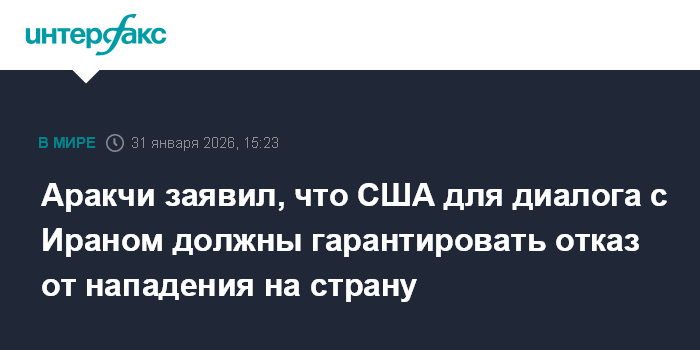 Москва. 31 января. INTERFAX.RU - Переговоры Тегерана и Вашингтона возможны, если США возьмут на себя обязательства более не атаковать Иран, заявил глава МИД Исламской Республики Аббас Аракчи в интервью CNN Turk.