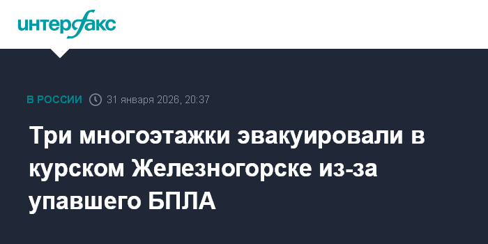 Три многоэтажки эвакуировали в курском Железногорске из-за упавшего БПЛА