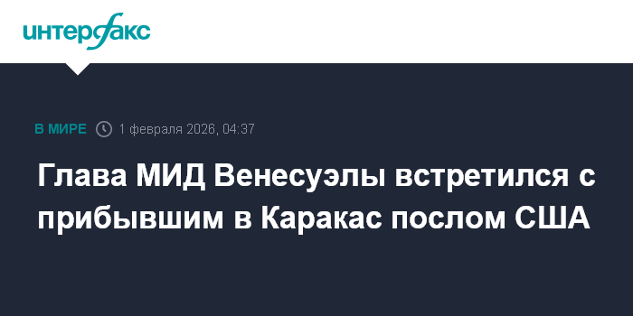 Москва. 1 февраля. INTERFAX.RU - Глава МИД Венесуэлы Иван Хиль провел встречу с послом США Лорой Догу вскоре после ее прибытия в Каракас, сообщает агентство ЭФЭ.