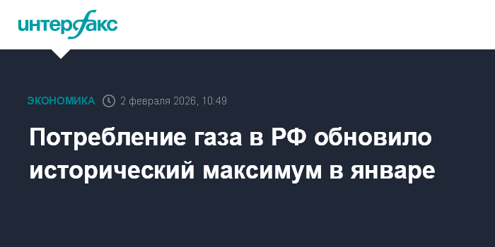 Москва. 2 февраля. INTERFAX.RU - Потребление газа в России в морозном январе 2026 года обновило абсолютный исторический максимум, сообщил "Газпром".
